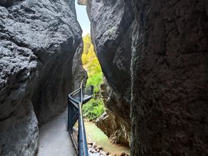 Una experiencia corta pero intensa. Caminaremos por pasarelas colgantes sobre el agua, encajonados en una garganta de roca caliza donde los buitres leonados vuelan a escasos metros de nuestras cabezas.